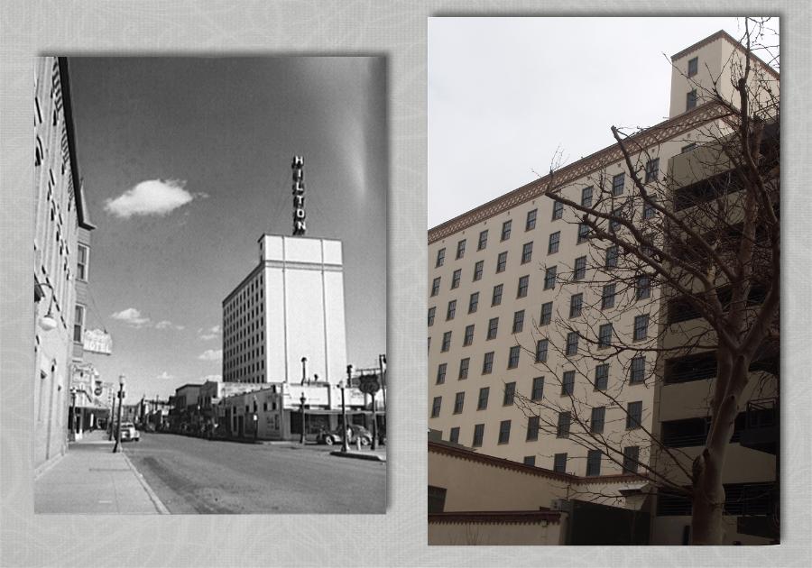 My very first photo is of the old Hilton Hotel in downtown Albuquerque New Mexico. This was one of the easiest photos to identify. On June 9, 1939 the Hilton Hotel opened in Albuquerque opened at a cost of $700,000.00 to build. It had 176 rooms and was the tallest building in Albuquerque. It was also the first building in New Mexico to have air conditioning. In 1969 the hotel was sold and renamed the Hotel Plaza. In 1981 the hotel was sold again, but it was not re-opened until it was resold again in 1983 after a major renovation project reducing the rooms to 114 with four suites. The hotel re-opened in 1984 as the La Posada de Albuquerque. In 2005 the hotel was sold yet again, renovated and re- opened as the Adaluz in 2009. It was impossible to take this photo from the same position as in the original as a new high rise has been built and would completely obscure the old Hilton if taken from the exact location. I had decided that in my attempt in obtaining these photos I would try to get the closest angle to the original as possible. I had to take this from the next block up, and angle the camera upward in order to get the building from the rear as in the original. There were two other photos within a couple of blocks from where we parked to get this photo, and one I walked right past, but did not know it until I got home and began reviewing the photos on the website |