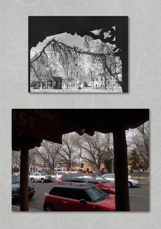 On the same day as I took the first photo, we (Jim and I), drove to Old Town Albuquerque for the next two photos. We were between soccer games for Sara and Twiggy on this day, so there was no time to linger and enjoy the plaza. After researching information on these photos, I have decided I want to go back to Old town sometime soon and go to the La Placita Dinning Rooms. Looks like it would be a neat place to eat. The fist photo taken in Old Town Plaza was from under a covered walkway looking across the Plaza toward the San Felipe de Neri Church with the gazebo in the frame. I was able to identify this was the site by recognizing the church in the photo after identifying the church (which is the next photo). The old stone gazebo is no longer in the plaza. I have been unable to find out when or why the beautiful stone gazebo was raised. |