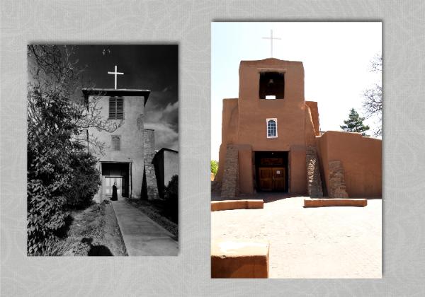 The final photo in the Santa Fe area was of the San Miguel Mission in Santa Fe. This is said to be the oldest church in the United States. I identified this by GOOGLE searching churches in New Mexico and going through hundreds of images, finally stumbling upon this one. This was the way most of the churches were identified. After getting this photo it was time to head out of Santa Fe. It was great to get so many photos all in one spot. The Chapel of San Miguel is the oldest church in Santa Fe. At Old Santa Fe Trail and De Vargas streets, about two blocks from the state capitol, San Miguel was originally built in 1626, although nothing of that building remains. The Pueblo Revolt began, it is said, with the burning of San Miguel. The chapel's sculpture of San Miguel, the church's patron, was carved in Mexico in 1709. In 1710, the chapel was completely rebuilt. Later, in 1859, Archbishop Lamy and the Christian Brothers of Santa Fe bought the chapel, and it became a part of Saint Michael's College. |