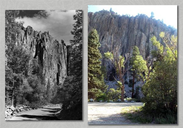 On our way to Red River to obtain two more photos we stopped at a scenic turnout in Cimarron Canyon State Park, which was the site of one of the photos. This photo was identified using the assistance of the Fan Page. The information that one fan provided on this photo was interesting, as they had posted their experience in finding this photo was simply happenstance. They were driving down highway 64 when they spotted the photo. I just think that is so cool. I only have had one of those experiences, but it feels really neat when you "stumble" upon one of the photos. |