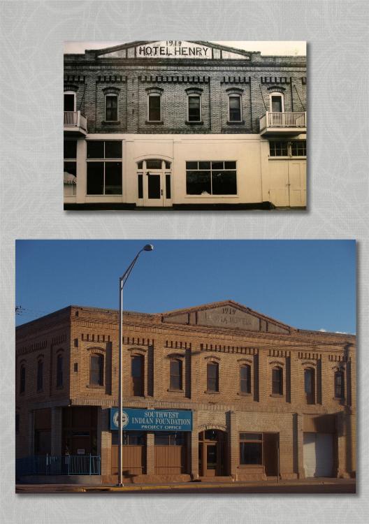 | The last photo that will be submitted before the close of the contest is the Hotel Henry. Driving back through the downtown area, we pulled off into a conveniently located parking lot right across the street from my very last photo opportunity before the end of the contest. Framed up the photo and off we went to the RV park for a night sleep before my very long awaited trip to the Petrified Forest. The ones left for the contest that I have identified, but will not get before the contest ends are: • Otto-Johnson building - Clayton • Taos Ski Area • Old Ford Building - Farmington • Taos Box Rio Grande River • Fuller Lodge - Los Alamos • St Joseph Church - Mescalero • View of the City - Raton • The Lodge at Cloudcroft • Rio Grande Theater - Las Cruces • Totah Theater - Farmington • Cook Building - Raton • Street View - Las Trampas • Street View - Hobbs • Street View - Mogollon • Bridge at the Farm and Ranch Museum - Las Cruces • Fort Seldon - Radium Springs • Brannigan Museum - Las Cruces • Building on the UNM Campus - Albuquerque • Old Drug Store - Farmington • Goddard Hall - Las Cruces The ones remaining left to be identified are: • Plaza scene • Adobe pueblo style building with hill in background • Modern appearing museum building • Door marked above with Fiber Arts • Ghost Town (Possibly Lake Valley) |