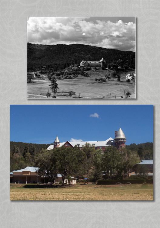 | Our next camping trip took us to Pendaries RV Park , northwest of Las Vegas, NM. This is an area of New Mexico in which neither Jim nor I have spent much time. I was excited to get three more photos for the contest in the area, and also to check out another RV park on our year of evaluating our Rving travels. The RV park was crowded, and once again seals the deal that RV parks are not our first choice. However, as RV parks go, this one was more like a campground than any I have experienced to date. No pavement and lots of trees, but there were still to many people, and too much stuff/things with these people. Oh yea and lots and lots of dogs. The first adventure in our new jeep to the first photo was exactly that, an adventure. The directions provided by GOOGLE (which always maps the shortest route not the best), took us up a narrow one width wide road, where we encountered several cars returning from the destination which is the Armand Hammer United World Collage. We were so glad to be traversing this road in our Jeep, but also longed for our GURTIE as this was the ideal situation for her. I could not belive this would be the main road to a Collage, and after we took the photo Jim spied a major road just beyond where we were parked. Sure enough, a much easier road into this location was there all along. This building was originally called Montezuma’ s Castle. We encountered another photo taker at this location, and that always makes me smile. |