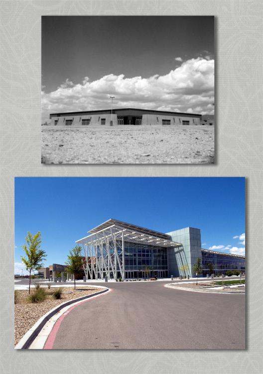 | So, after lots of thought we decided to buy a Jeep. Although we love our GURTIE (1987 Suzuki Samurai) we have discovered her limitations. The most significant of which is that I can not drive a standard transmission. So canceling our camping trip for this weekend, and after we made this significant purchase, we set out to snatch some of the Albuquerque photos we had previously missed. The first photo was of the Pit. The Pit is a sporting venue for the University of New Mexico, and as you can see the building has changed significantly over the years, and the original photo had be stumped. To me it looked like the pitch of the roof was directly over the doors, put this photo was one that was put up on the New Mexico Fan Facebook page, before pressure stopped the page from posting photos, and I commented that I did not think it was the Pit as the Pit had a flat roof and this had a pitch, the Fan Page pointed out to consider the angle at which the photo was taken. It immediately made sense to me, and I could then tell yes, indeed it was the Pit. |