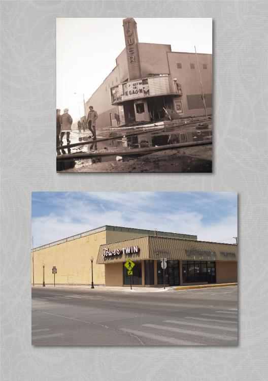 | Next stop, Portales, for a shot of the Tower Theater. This photo took a little research to identify, a GOOGLE seach of Tower Theater Fire New Mexico led me to the information that the theater had been rebuilt after the fire as the Tower Twin in Portales, NM. I have never been to Portales, and was excited to get to go to an entirely new city. We were using Kathy’s navigation system on her cell phone, and when we got to Portales the voice kept telling us where to go, but we kept driving around the small and uncrowded downtown area in circles. Why, well because we kept driving right past the building not even seeing it. We even stopped and parked right next to it, looking at the map on her phone and my printed map and “saying, we are right here, were is it?” We finally did see it and grabbed our shot. We made a quick stop on the way out of town at the Sunland Peanut Farm and got some peanut butter and peanuts as gifts for the families. Burned March 10, 1978 - rebuilt the same year Closed June 24th, 2009 |
